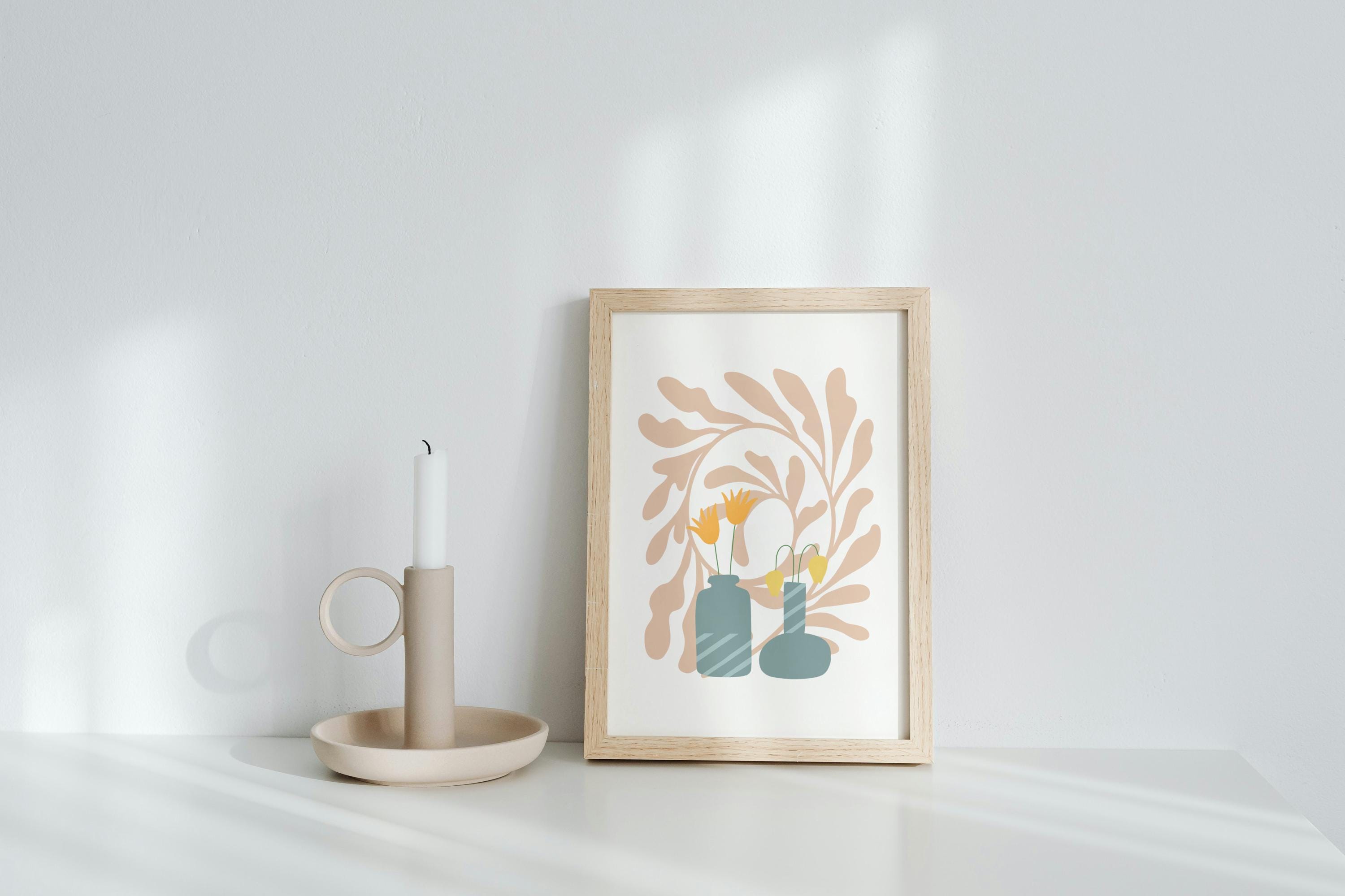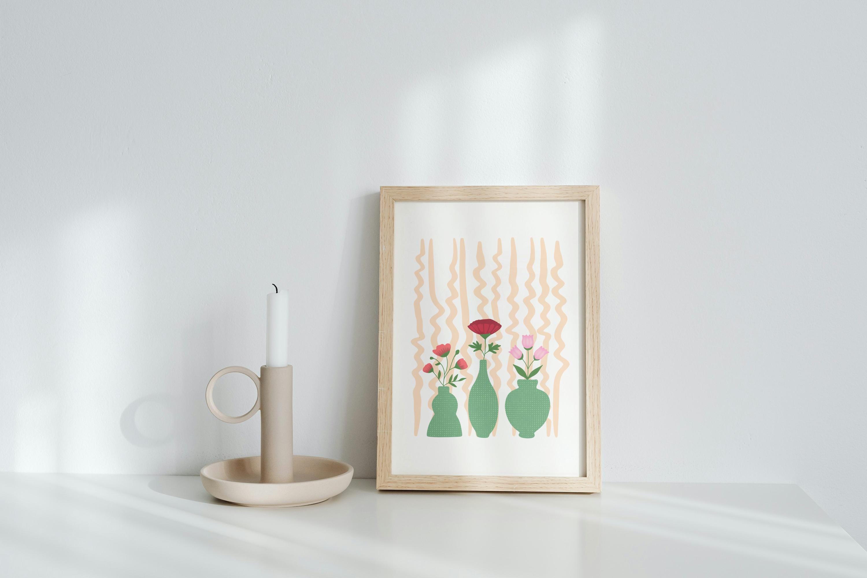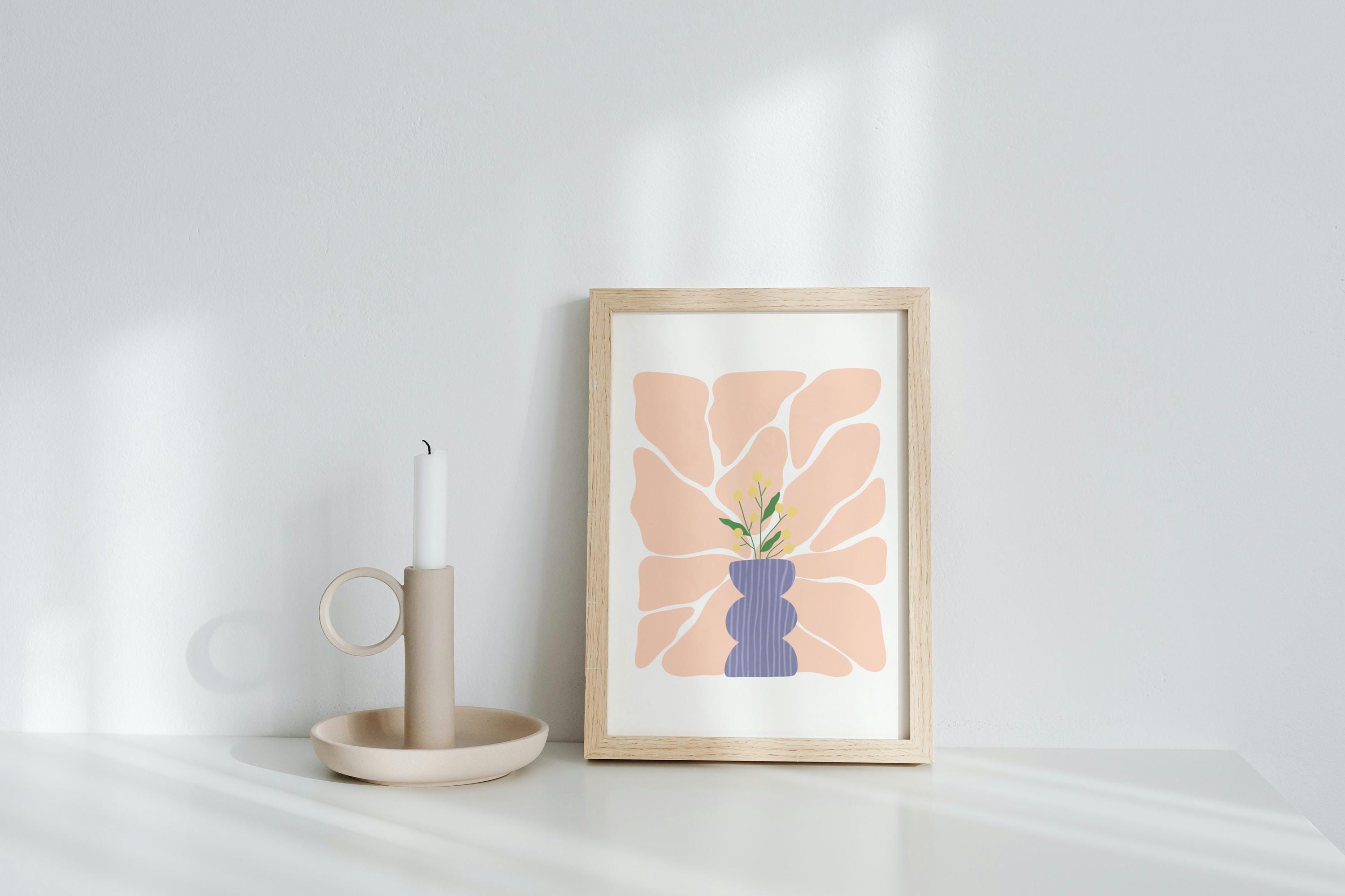 The full Stillness in Bloom series, featuring all nine A4 botanical still life prints. Designed to be displayed together, this collection creates a cohesive, modern gallery wall filled with soft color and quiet balance.
